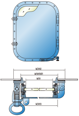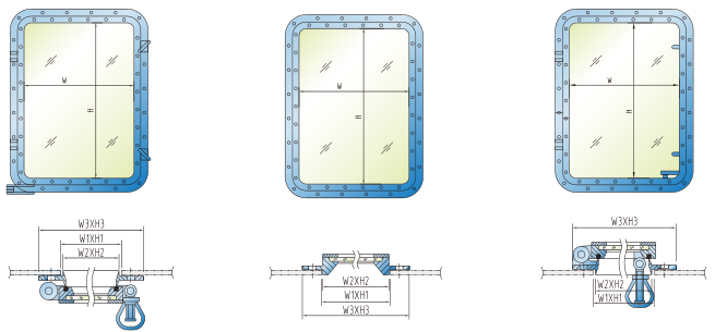 说明:一般系列螺栓式矩形窗(N)一般系列(N),重型(E),公称尺寸450X630(代号4),凸启高…