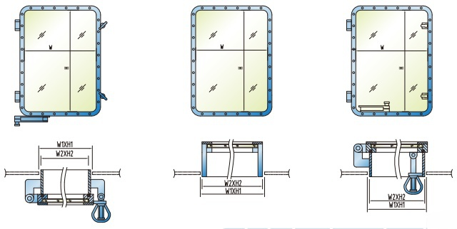 说明:一般系列螺栓式矩形窗(N)一般系列(N),重型(E),公称尺寸450X630(代号4),凸启高…
